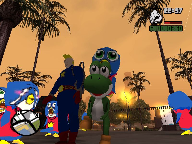 日本語化しない場合は、GTA_SA.EXEで起動する。
