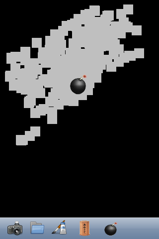 黒塗り画面の下のどこかに爆弾が隠れているよ!